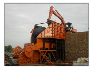 The Material (Stone to be Crush or reduced in Size) is fed / kept into a Hopper which is either made by Civil construction or Fabricated. This Stored material fall into the processing equipment for further Process.